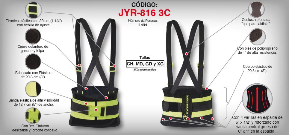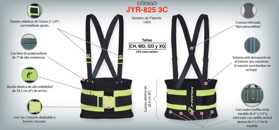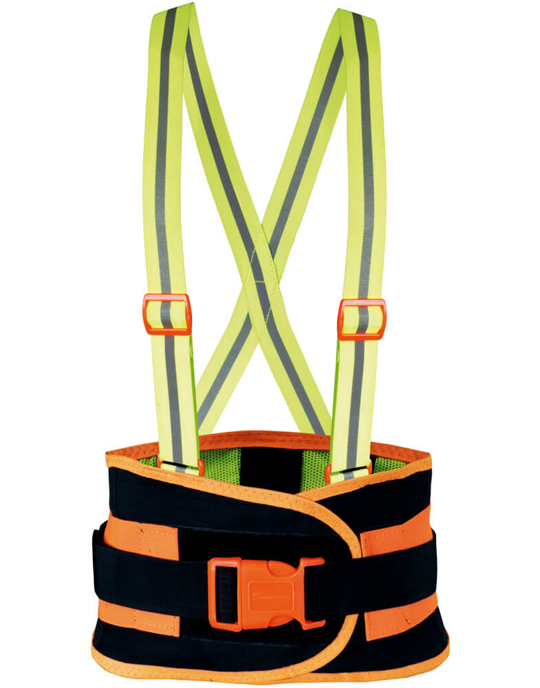 Faja con soporte sacrolumbar de malla elástica con tirantes high visibility refl